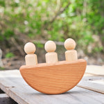 A simple Wooden Rocking Boat with Sailors will delight your child. With just a simple touch of the hand, the cherry wood boat gently rocks. Three removable birch wood peg sailors are 2.5 inches tall and 1 inch in diameter. Simple, natural wooden toys by Camden Rose are made from quality hardwoods.