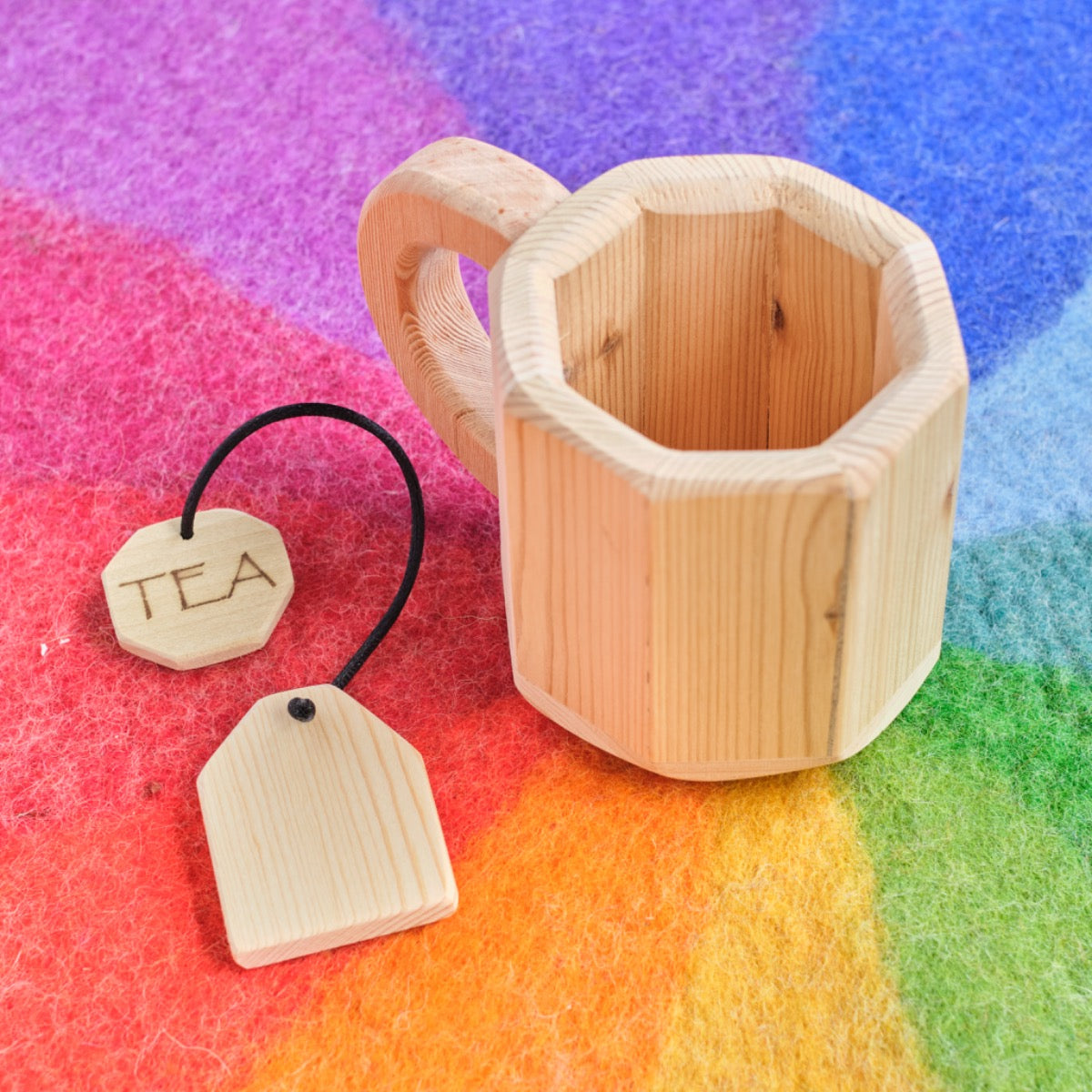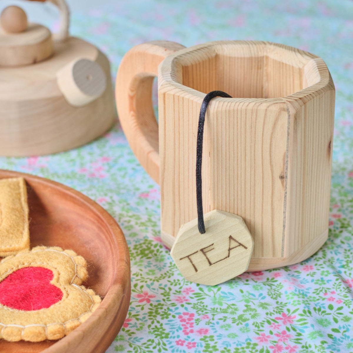 A perfect addition to our Wooden Tea Kettle! What a great way to start their imagination brewing. Our Wooden Tea Cup with Wooden Tea Bag features all pine wood, and the word TEA is wood burned.