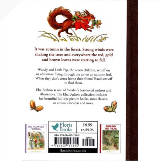 Elsa Beskows autumn adventures for children continue with Woody Hazel and Little Pip. In this mini book edition, the Acorn boys go for a ride on an oak leaf blowing in the wind. Come and share their far-from-home adventures.
